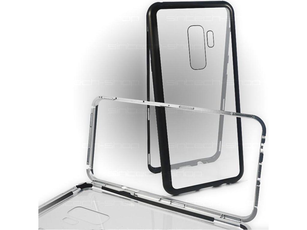 Magnetický hliníkový kryt s tvrzeným sklem pro Samsung Galaxy S9+