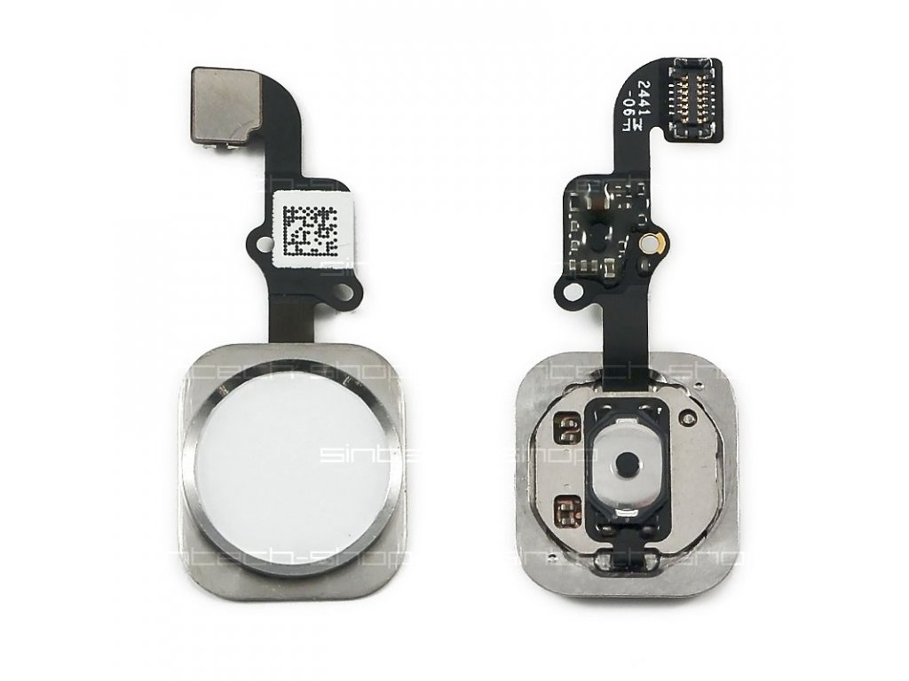 Obsahuje kompletní tlačítko a flex kabel připojení, neobsahuje těsnění, ve kterém je tlačítko uchyceno. Barva tlačítka je bílá a má kolem kovový okraj v barvě telefonu.